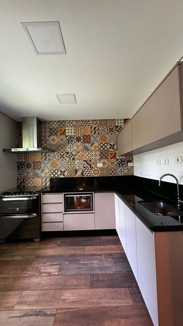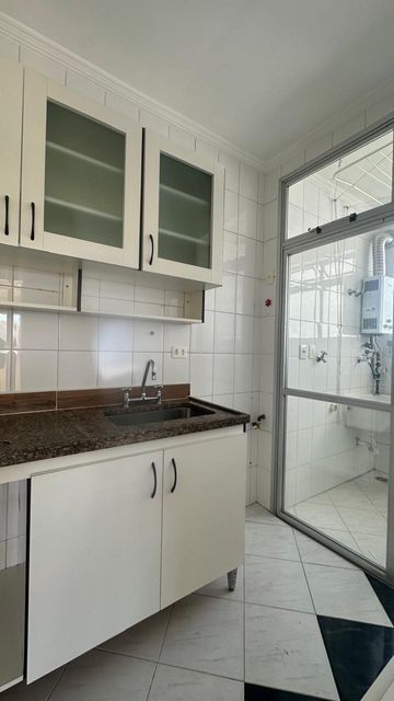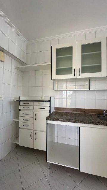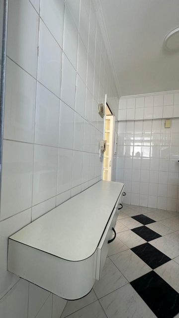 A cozinha é prática e muito bem planejada, com abundantes armários superiores e inferiores, além de uma bancada versátil que pode ser utilizada como mesa para refeições rápidas. A lavanderia é integrada por porta de vidro, garantindo excelente ventilação e luminosidade.