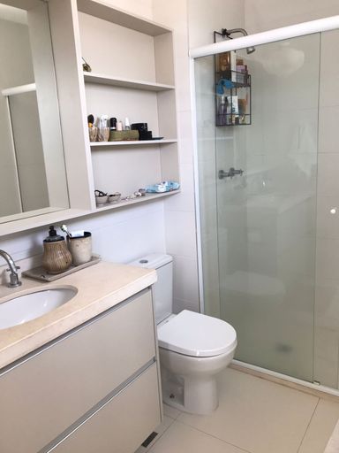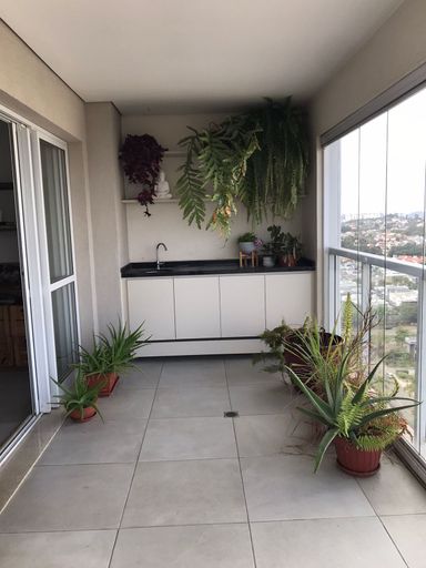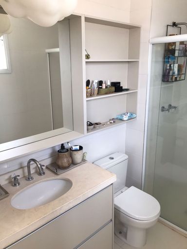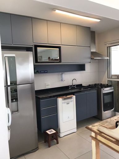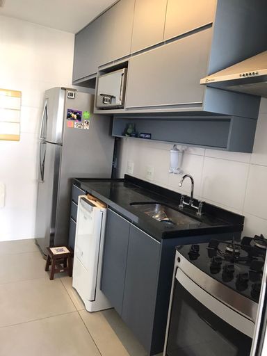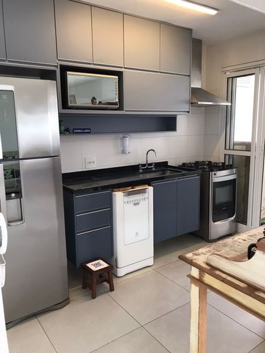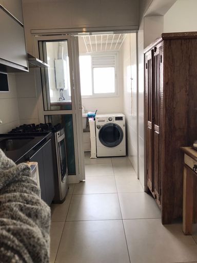 A cozinha é integrada à área de serviço, que comporta até duas máquinas, com varal robusto e exaustor de três estágios já instalado. O aquecimento é a gás, garantindo água quente em todos os banheiros e também na cozinha. Os banheiros estão equipados com box de vidro, armários, espelhos e duchas higiênicas. Recentemente foram realizadas manutenções preventivas nas varandas e no aquecedor. O imóvel já conta com móveis planejados na cozinha, varanda, um quarto e três banheiros, havendo possibilidade de ampliação conforme negociação. Há ainda a opção de locação com máquina de lavar louças. Imóvel pet friendly.