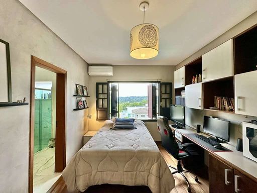 • 3 suítes espaçosas com ar-condicionado – sendo a máster com closet duplo, hidro e vista para o vale