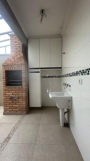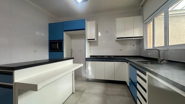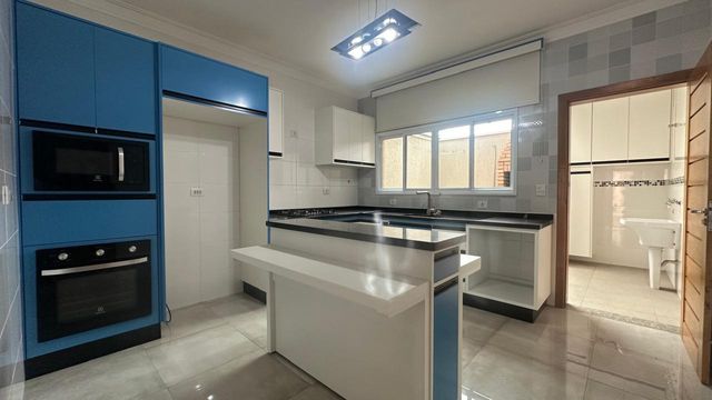 Imóvel com boa distribuição interna. No piso inferior, conta com sala ampla para 2 ambientes, lavabo bem decorado, iluminação dirigida, seguida por uma cozinha moderna, planejada, completa, ótima de armários, com uma útil bancada em ilha e bancada em granito, com forno, fogão e micro-ondas . A lavanderia é coberta, com armário, e um espaço gourmet com uma bela churrasqueira para você desfrutar com a família e convidados.