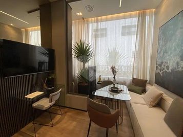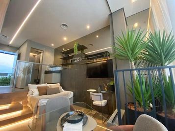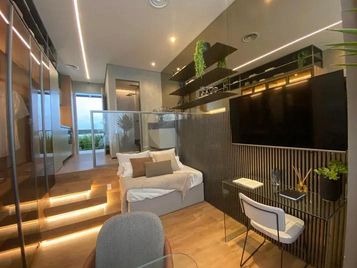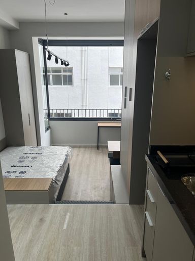 Com pé-direito alto, este studio oferece tudo o que você precisa para morar ou se hospedar com praticidade. O ambiente é totalmente mobiliado e equipado com eletrodomésticos modernos, incluindo ar-condicionado, geladeira, micro-ondas, cooktop e máquina de lavar roupas, garantindo comodidade no dia a dia.
